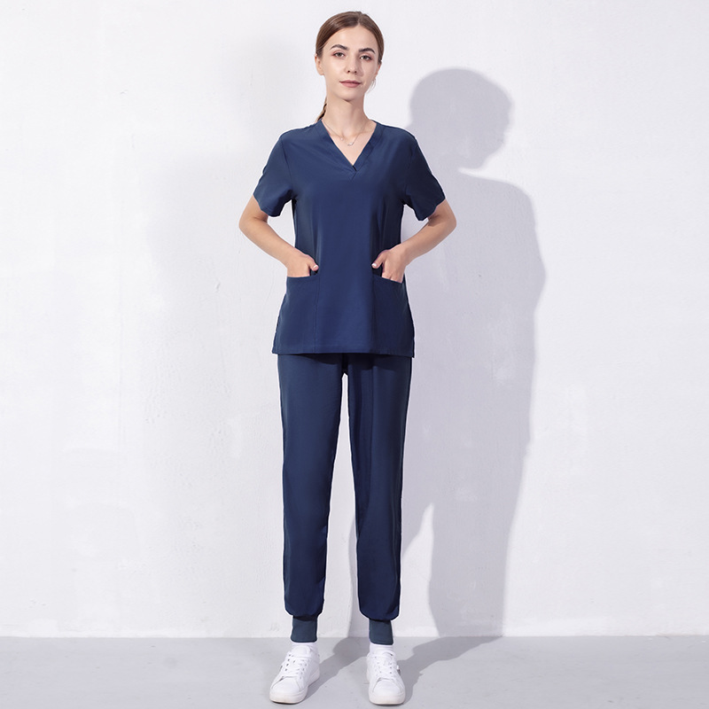 72% recycled polyester 23% viscose 5% spandex medical scrub uniform