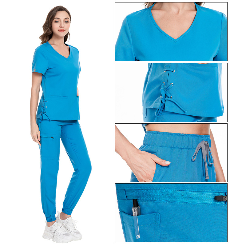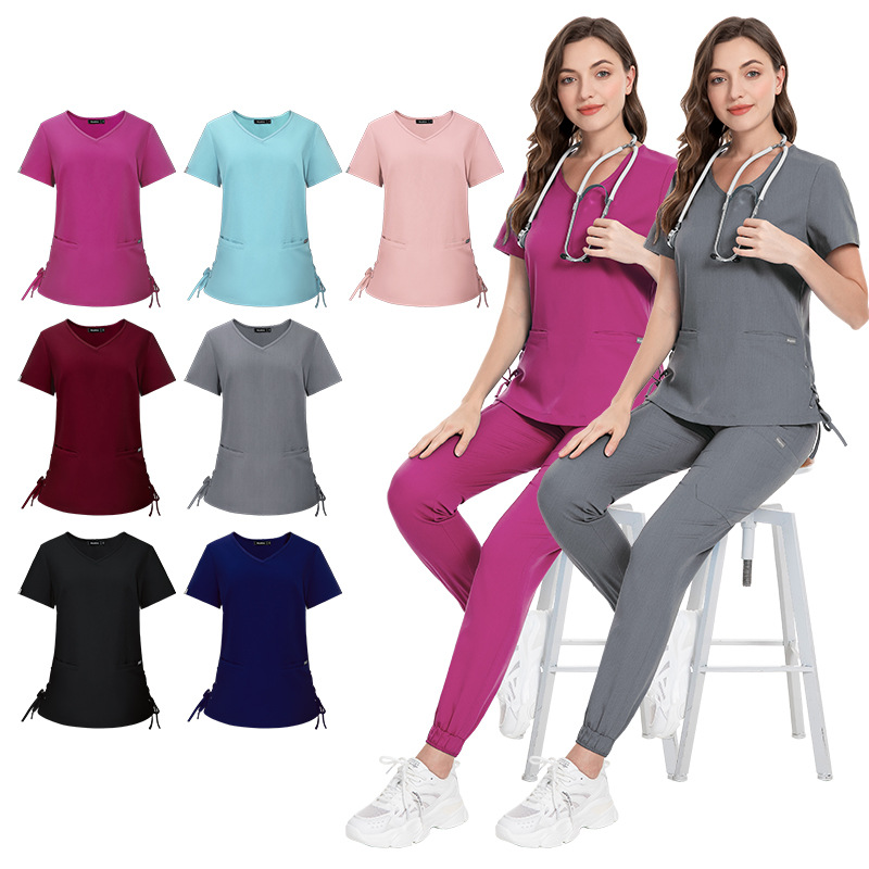 72% recycled polyester 23% viscose 5% spandex custom medical workwear