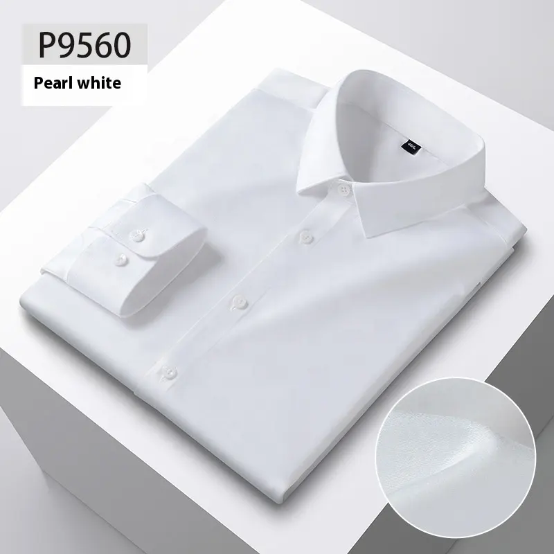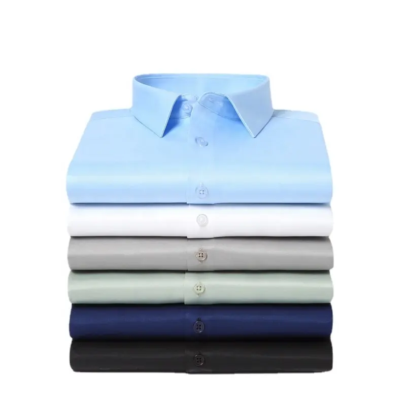 Business Style Pure Color No Ironing Spring Work Stretch Silk White Shirt Long Sleeves