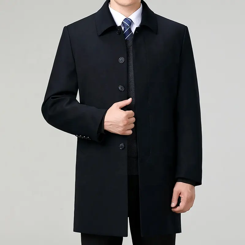 Classic Medium Long Style Middle-Aged Men’s Windbreaker Jacket