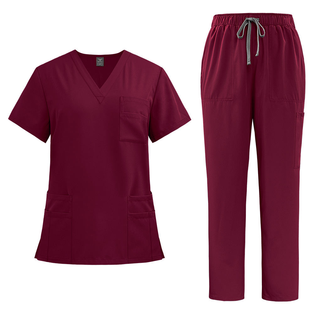 72% recycled polyester 23% viscose 5% spandex custom scrub set