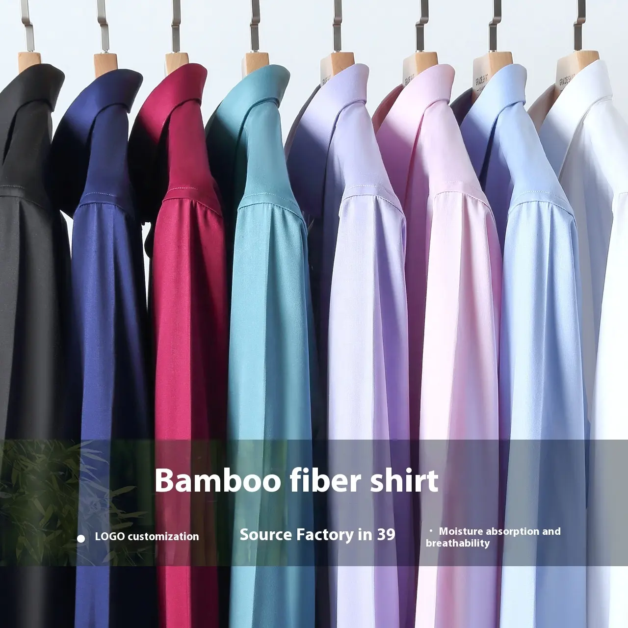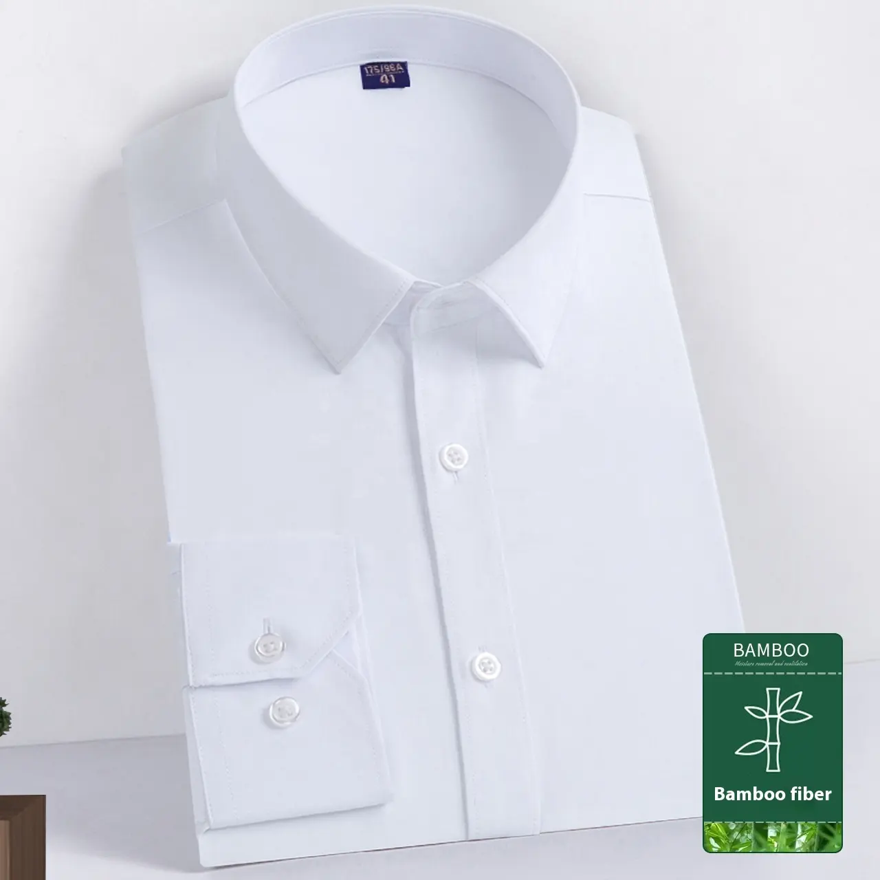 Dobby Fabric Summer Style White Bamboo Fiber Dress Shirt Wicking shirt