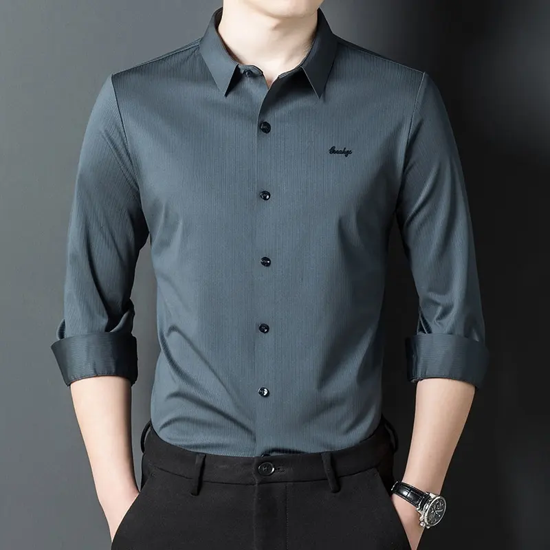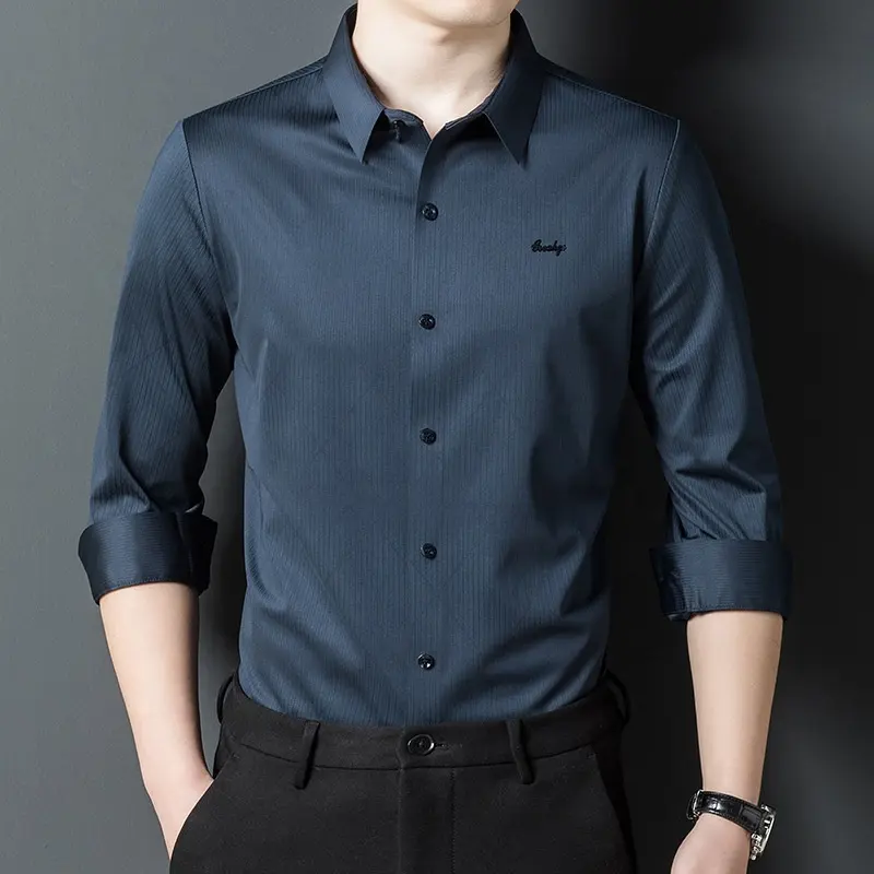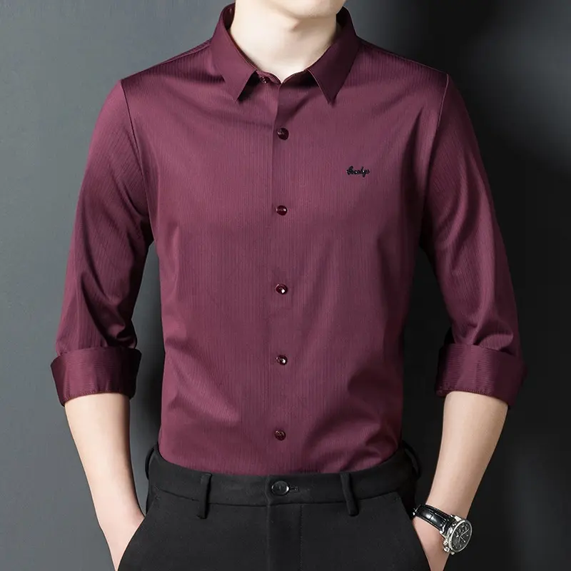 Dress Trendy Casual Gong Long Classy Men’s Burgundy Knitted Shirt Long Sleeves
