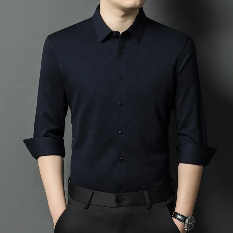 Easy Matching Business Tops Sheep Wool Thick Knitted Print Style Long Sleeve Casual Shirts