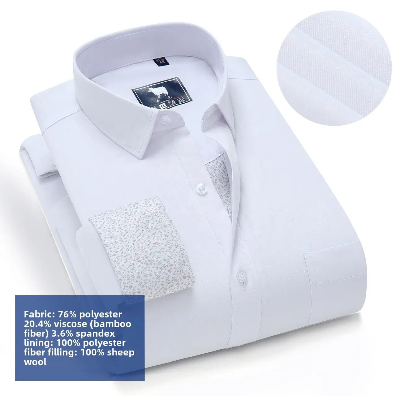 Fiber Strips Fall Winter Casual Long Sleeve Fleece-Lined Wool Heat Tech Shirt