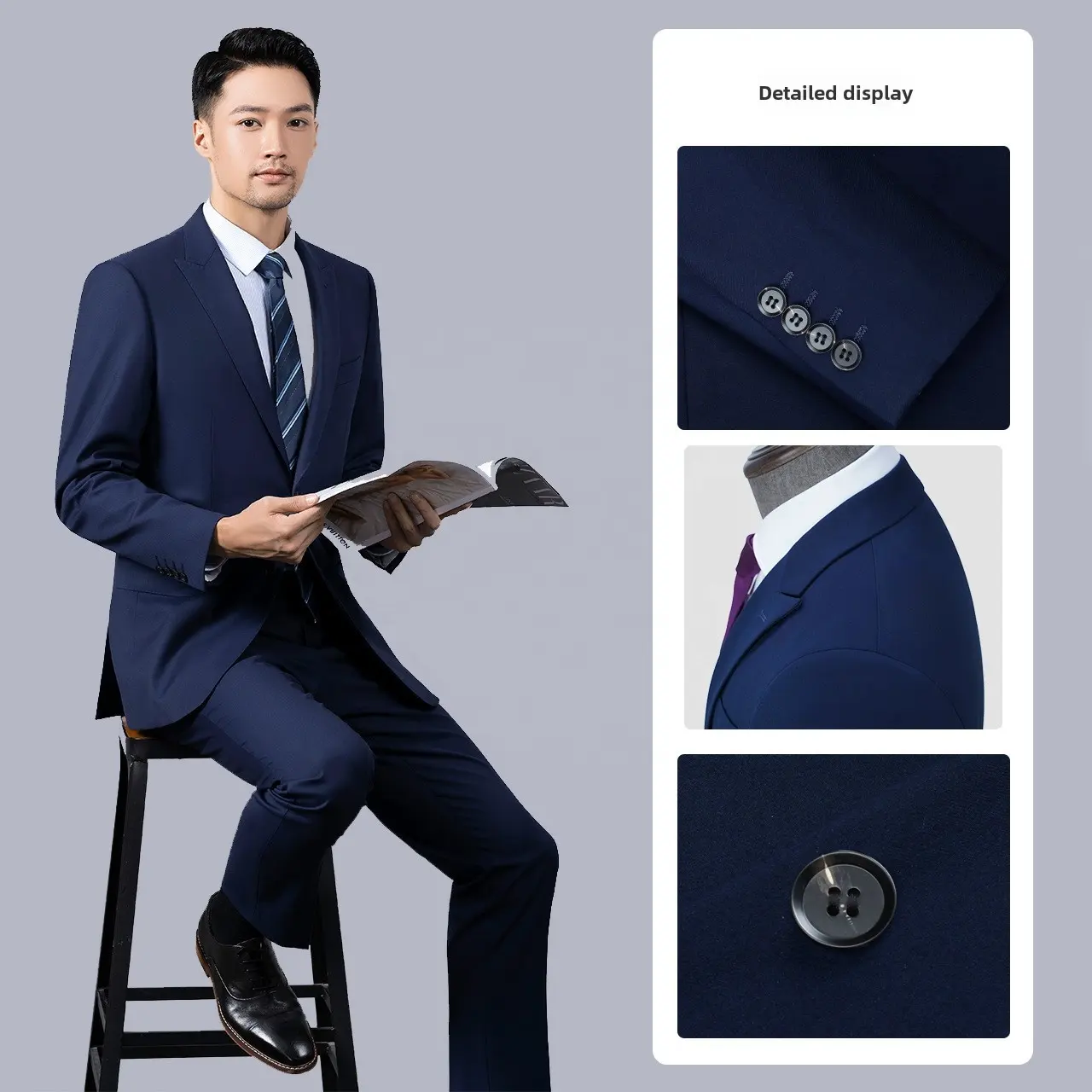 Groomsmen Button Fly Pant Closure Men’s Royal Blue Single-Breasted Suit Office Uniform