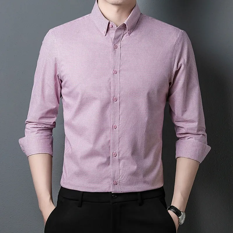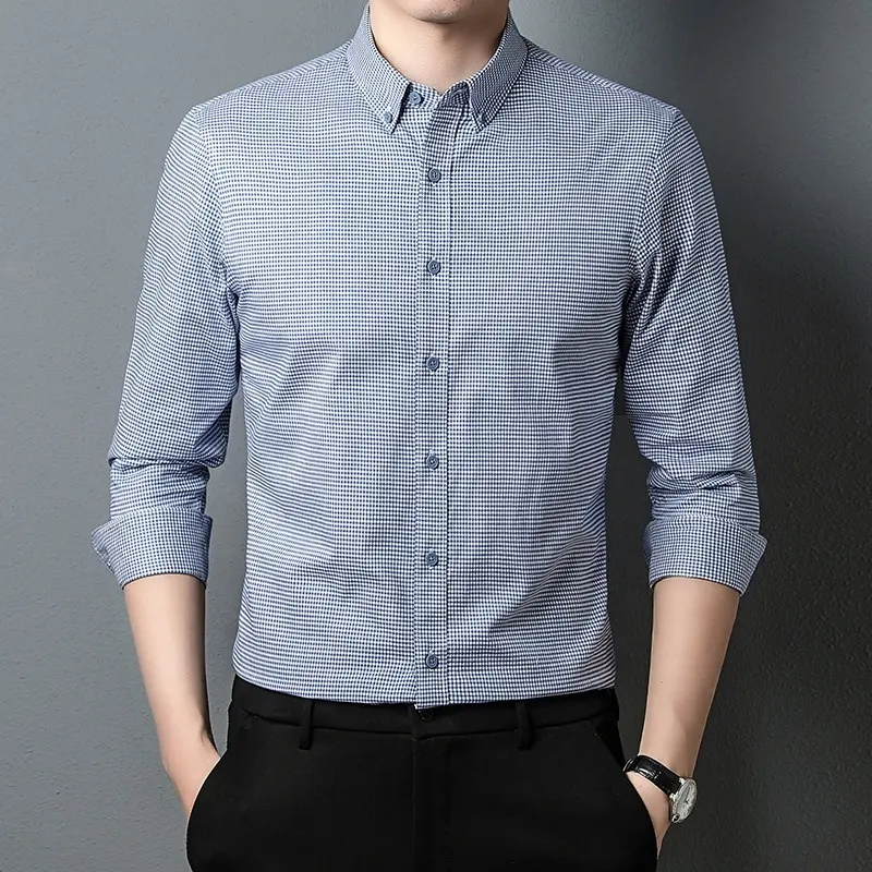 Loose Fit Pure Cotton No-Iron Twill Fabric Big Brand Men’s Trendy Plaid Shirt Long Sleeves