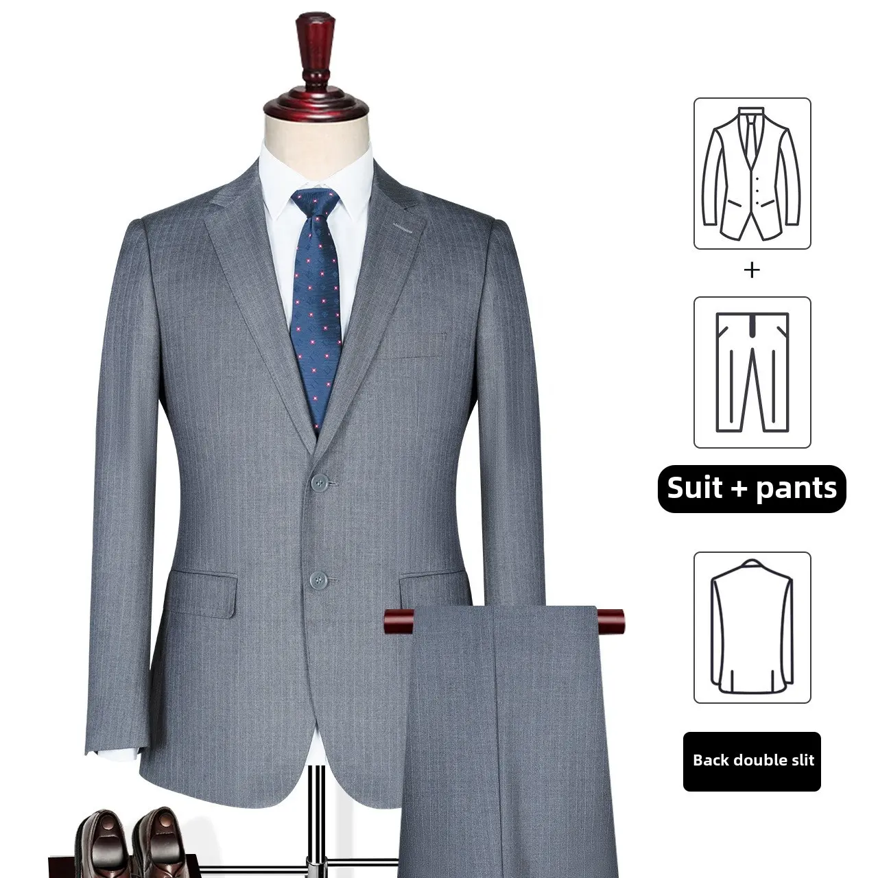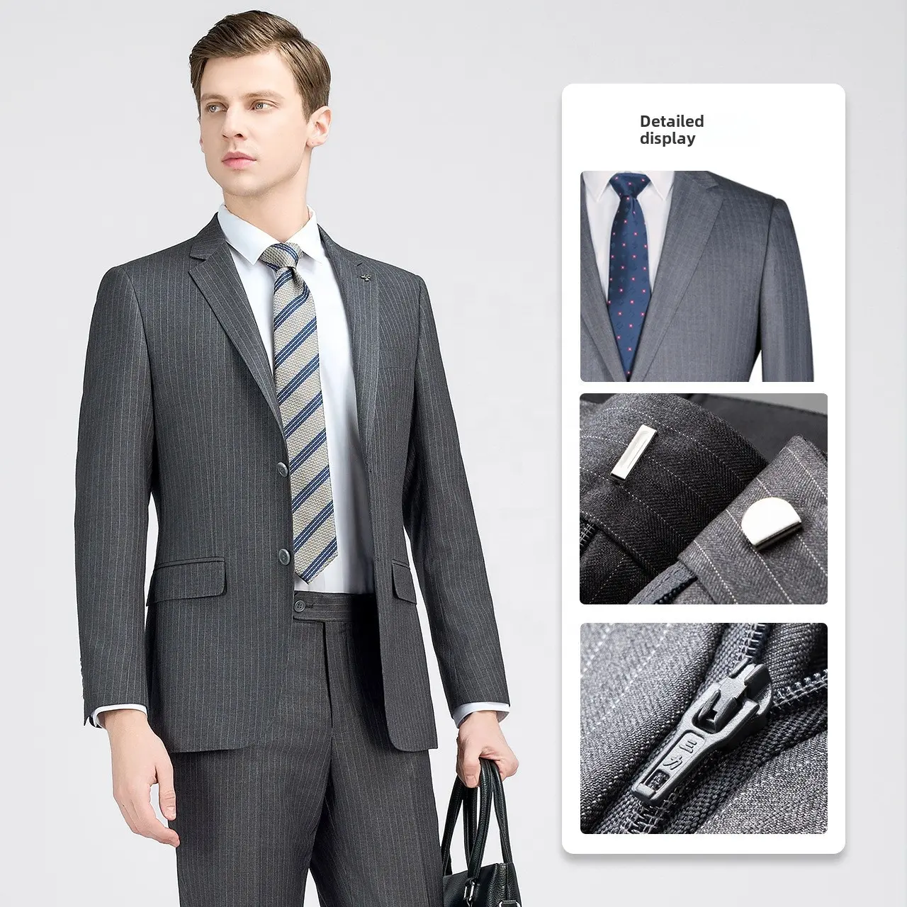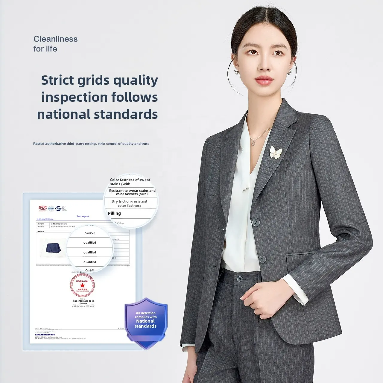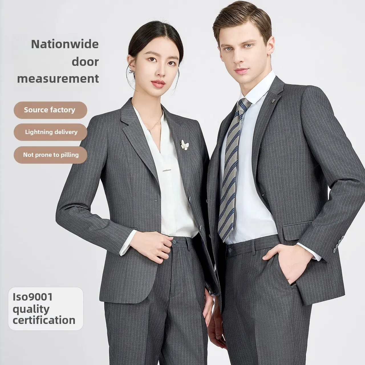 Men’s and Women’s Workwear Gray Striped Slim Fit Casual Suit Office Uniform