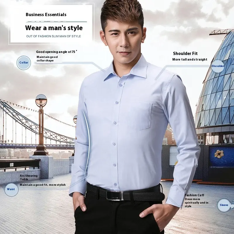Men’s Business Long Sleeves Pure White Casual Comfort Basics Satin Shirt