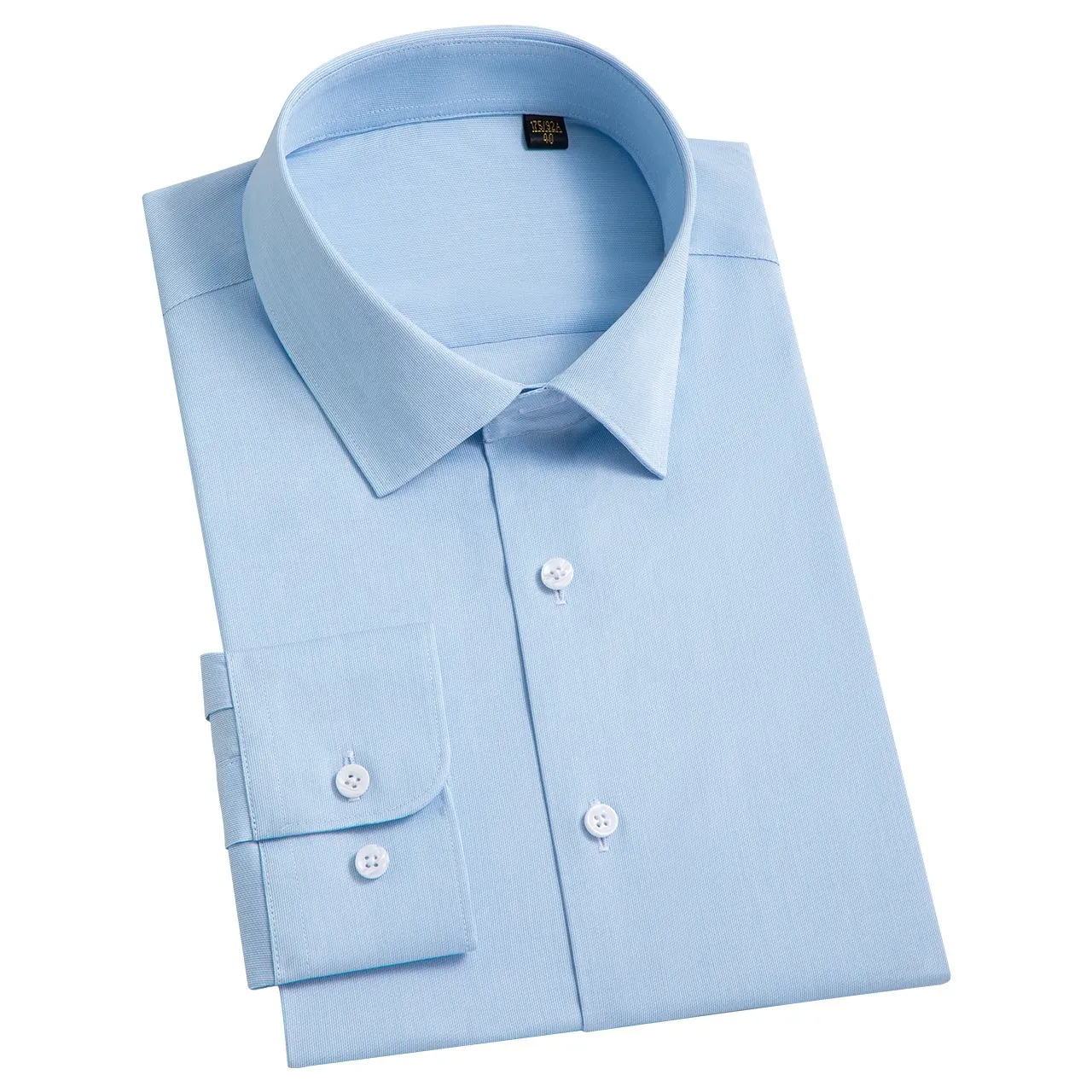 Men’s Dress Light Blue Texture Micro-Elastic Classy White Collar Single shirt