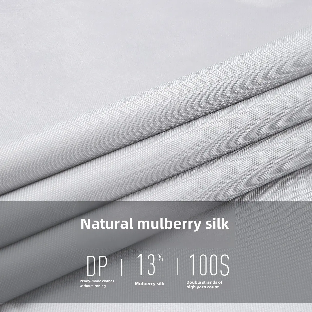 Men’s Light Gray Mulberry Silk White Collar Summer Non-Iron Short-Sleeved Polo Shirt