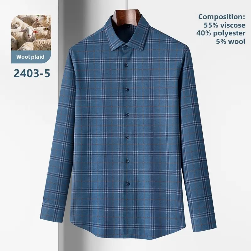 New Arrival Thickened Smooth Casual Long Sleeves Accessible Anti-Wrinkle Wool Grid Pattern Shirt
