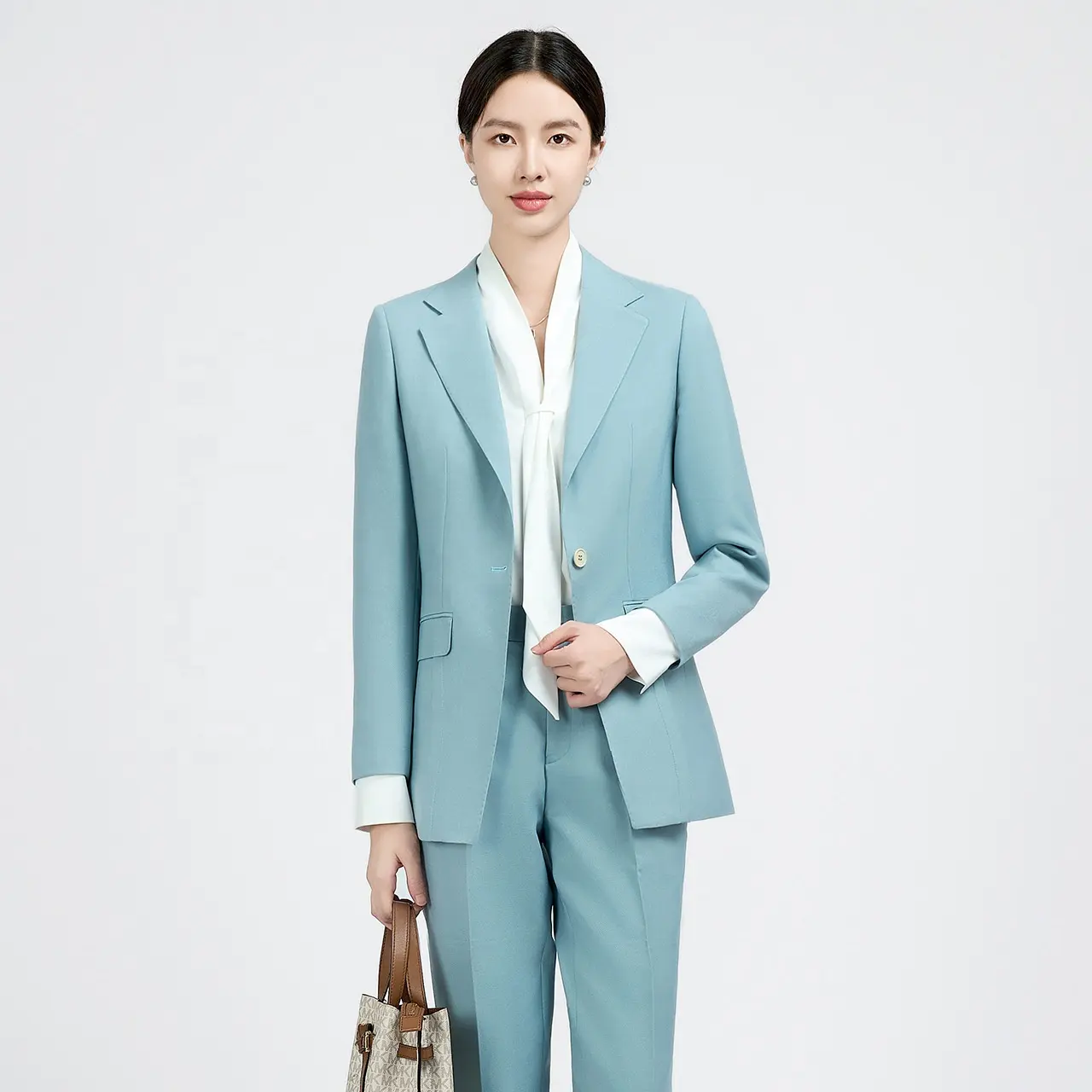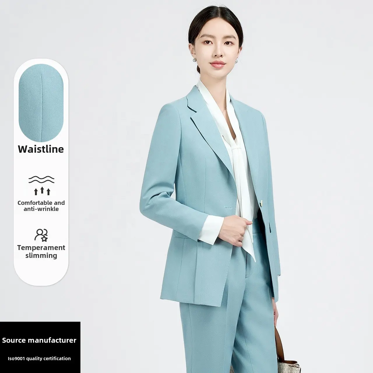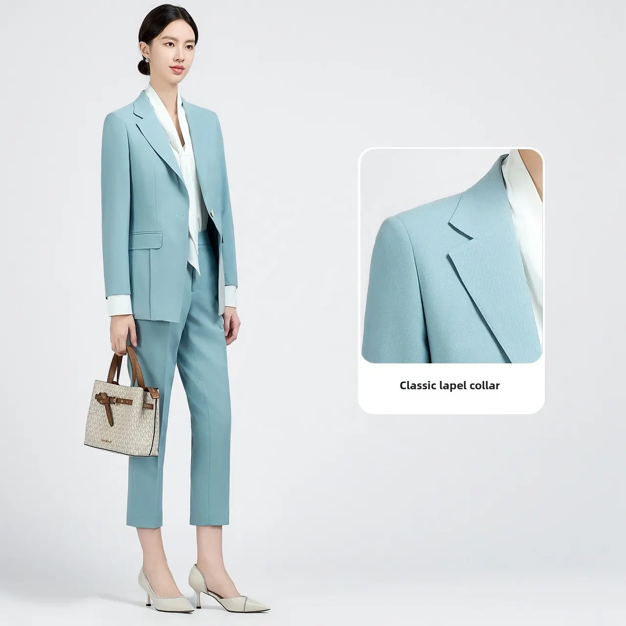 Popular K-Style 2024 New Arrival Women’s Elegant Light Blue Casual Suit Set Office Uniform