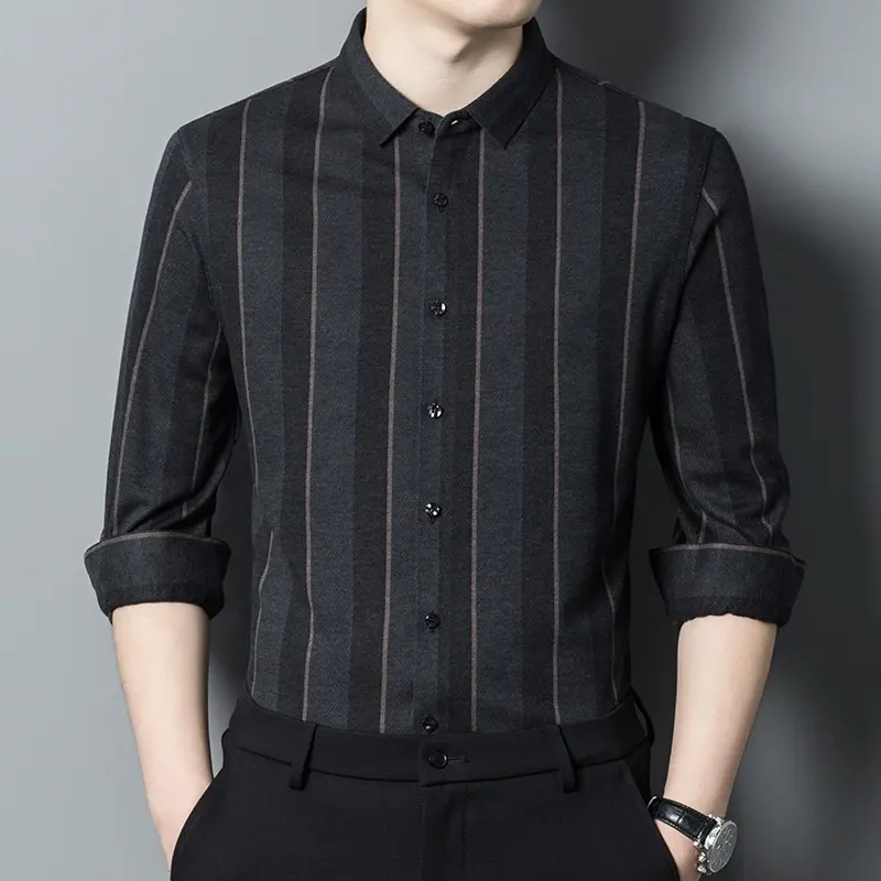Stripes Luxury Long Sleeves Men’s Casual Twill Shirt
