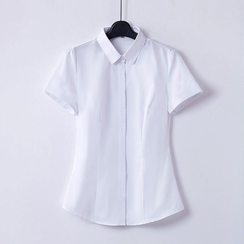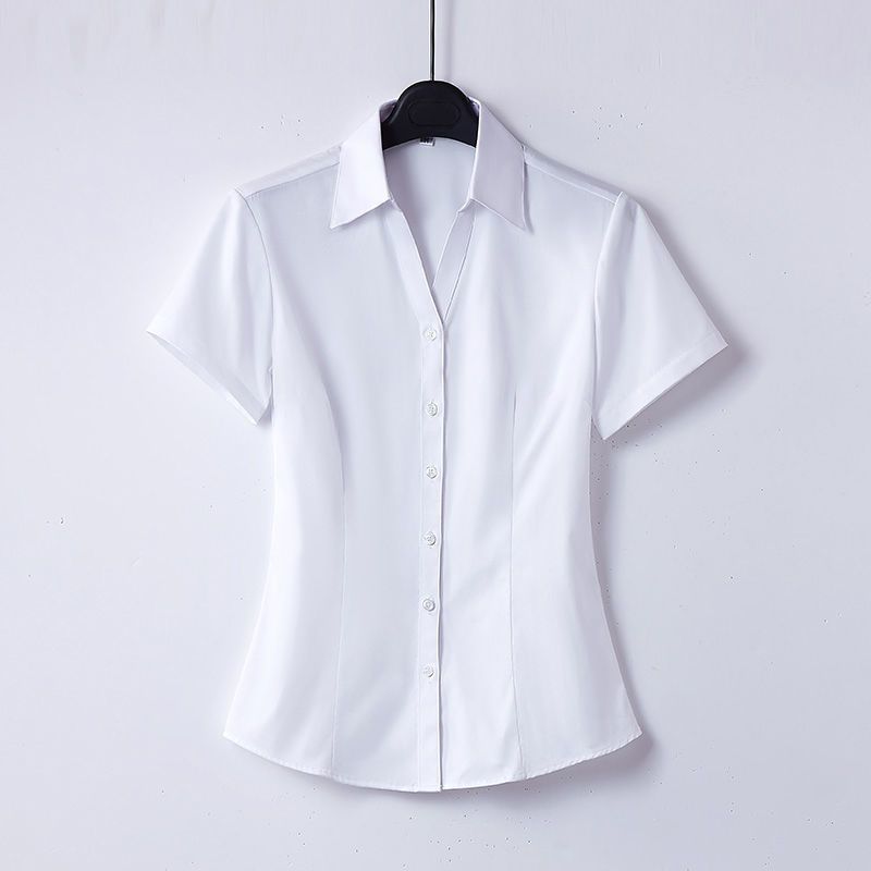 Summer White Cotton Shirt Women Business Casual Short-Sleeved