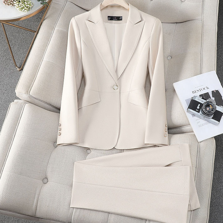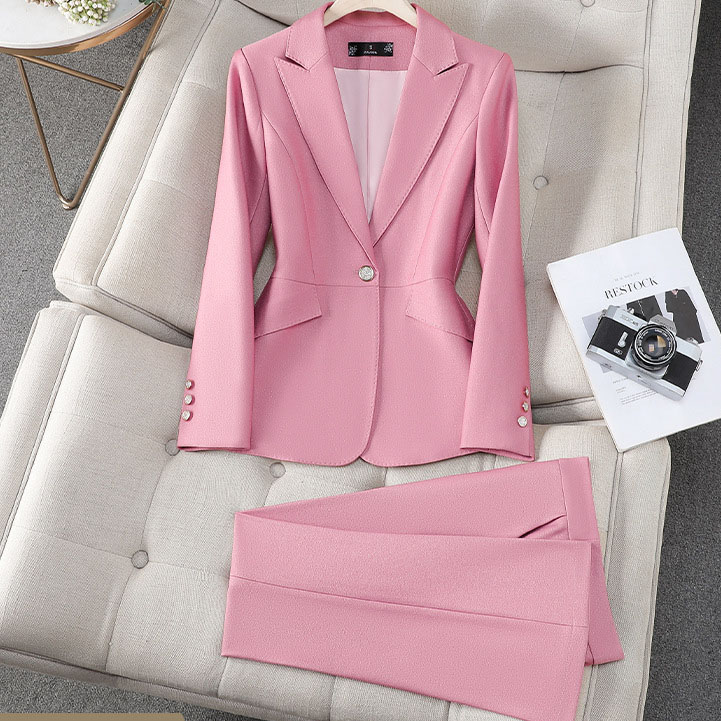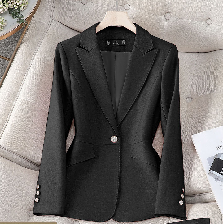 Women’s Black Knitted Suit Casual Slimming Professional Look Button Suit Office Uniform